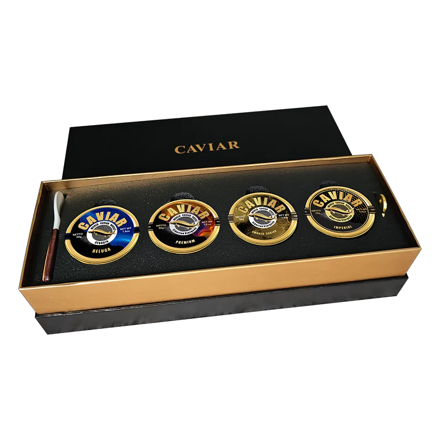Experience the ultimate caviar indulgence with our Luxury Caviar Tasting Set (4 × 50g).