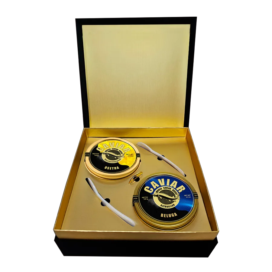 An extraordinary pairing of Beluga (Huso Huso) 125g from Azerbaijan and Osetra (Russian Sturgeon) 100g from Georgia. Two iconic sturgeon species, beautifully presented in an elegant luxury gift box. A refined gourmet experience delivered free across Singapore, fresh, premium, and unforgettable.